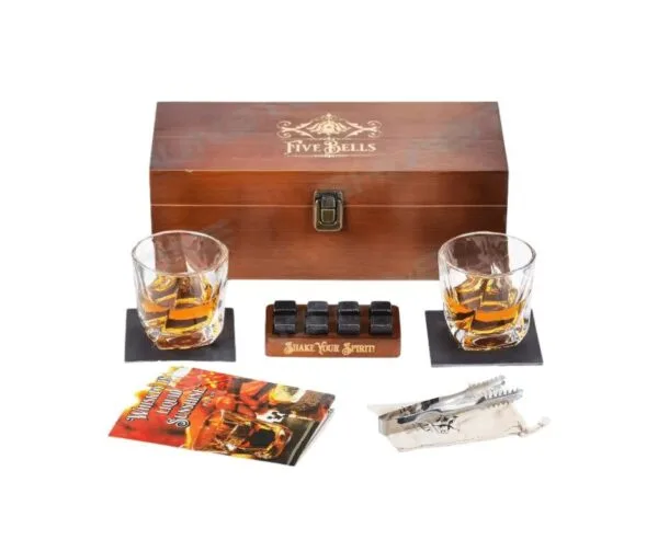 Подарочни сетови, Виски премиум сет Five Bell's + Пијалок, Подарочни сетови со чаши, БИСТРА ВОДА, Виски