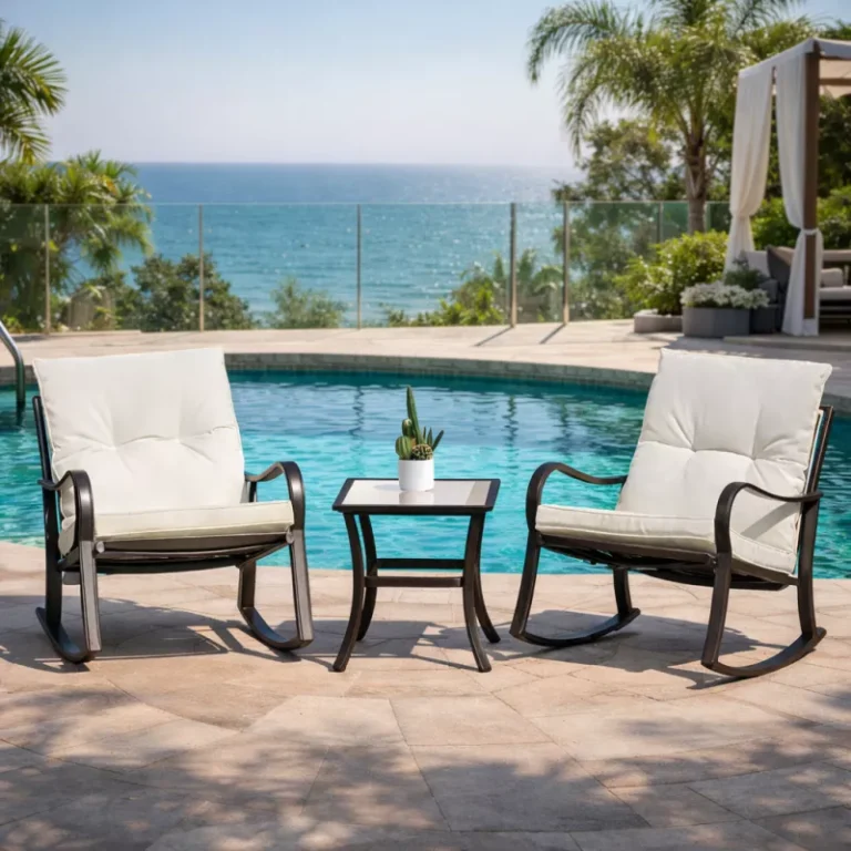 VERANO Градинарски сет – 2 лулашки столици + масичка (Столица 60.5×83×82 cm, Масичка 45×45×49.5 cm)