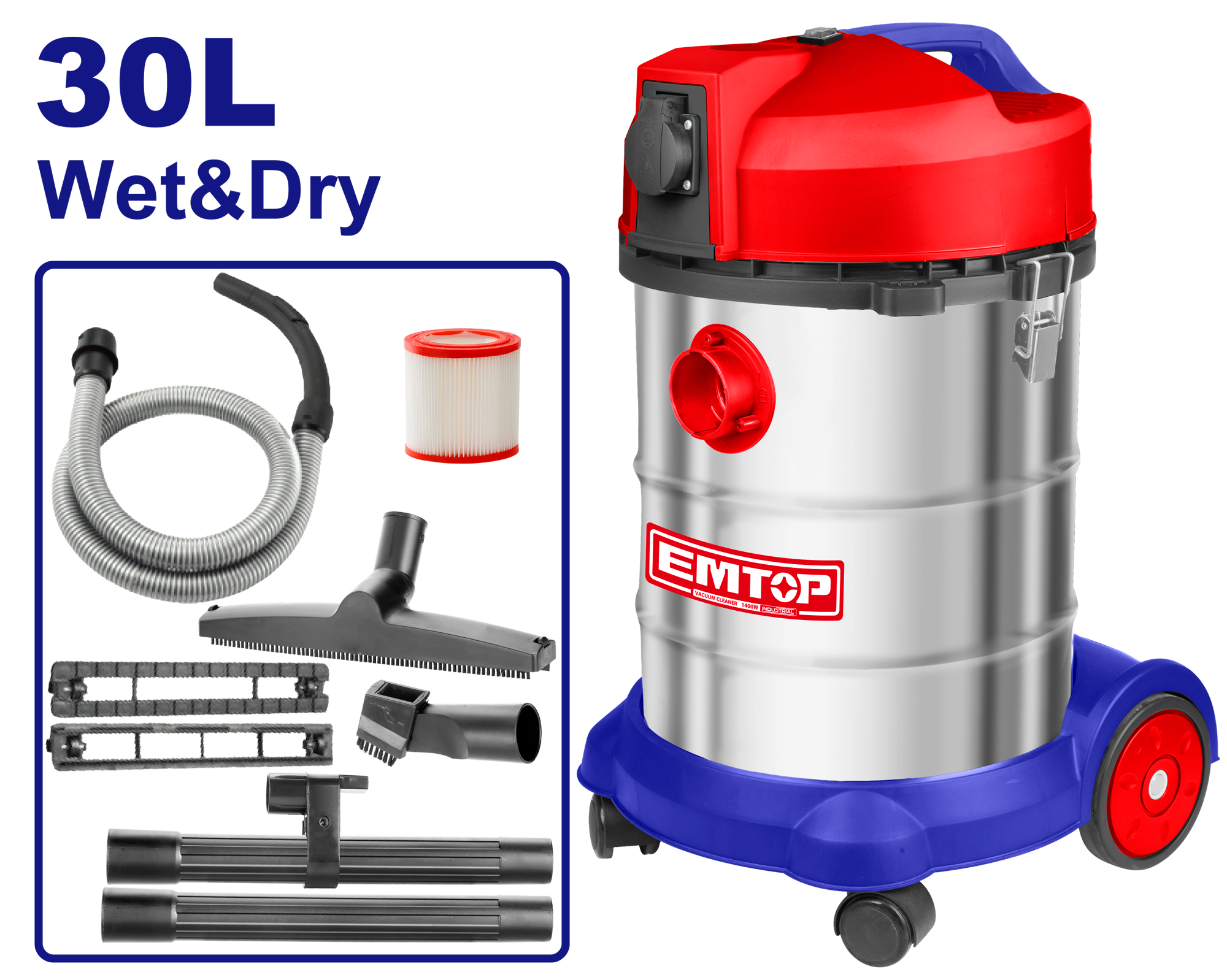 Правосмукалка за професионална употреба со иноксен сад и капацитет од 30l